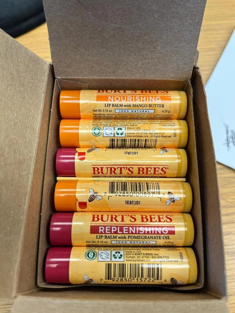BURT'S BEES REPLENISHING LIP BALM 18 STICKS TOTAL 9-MANGO 9-POMEGRANATE 100% NAT