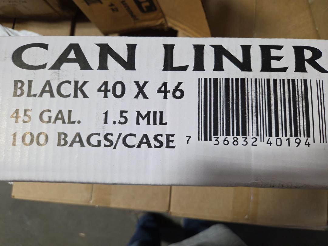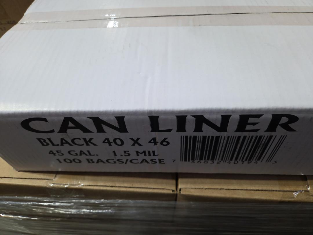 Can Liner Black 40 X 46 -45 Gal 1.5 MIL 100 Bags Per Case